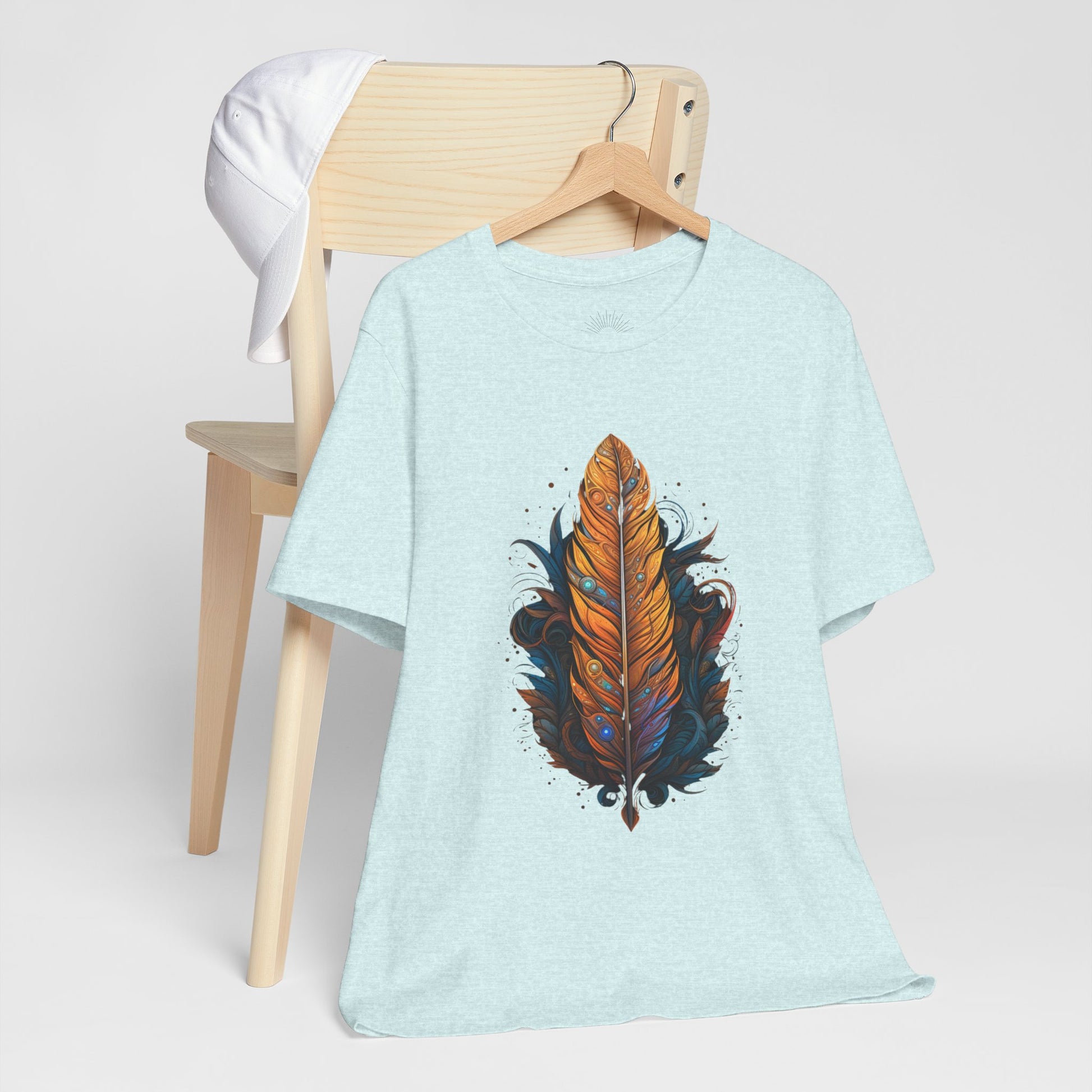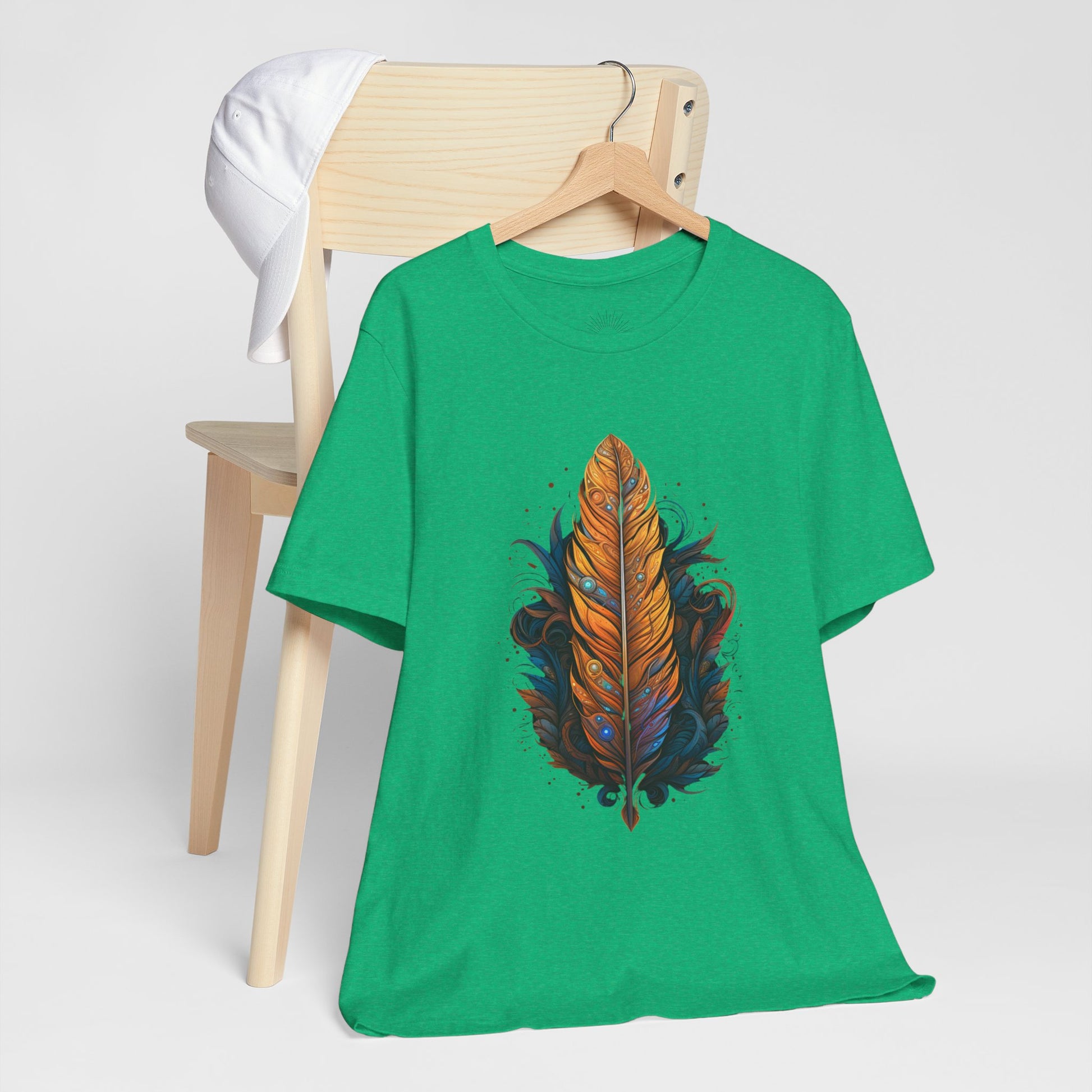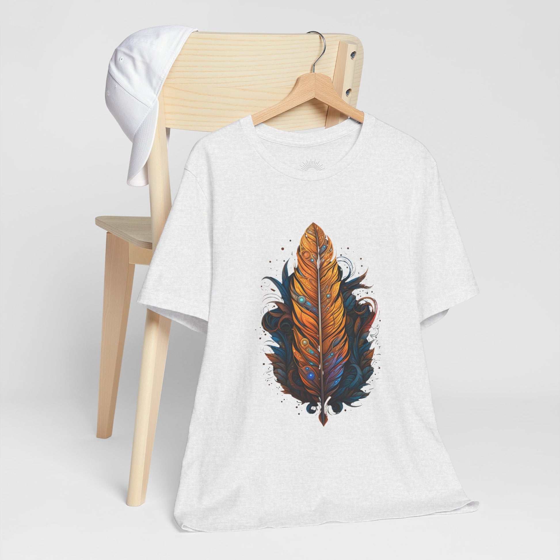 Artistic Feather T-Shirt | Unisex Short Sleeve Tee for Nature Lovers | Casual Wear, Gift for Men/Women, Boho Style, Outdoor Activities