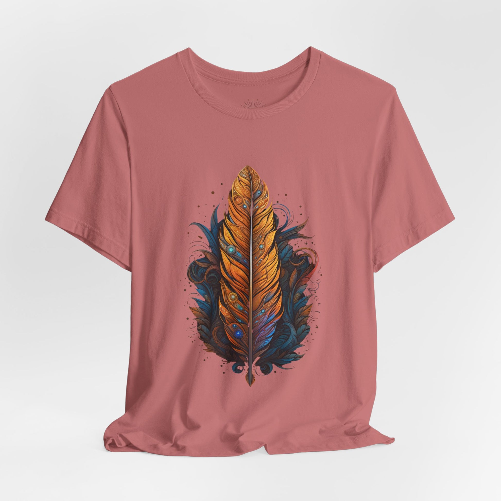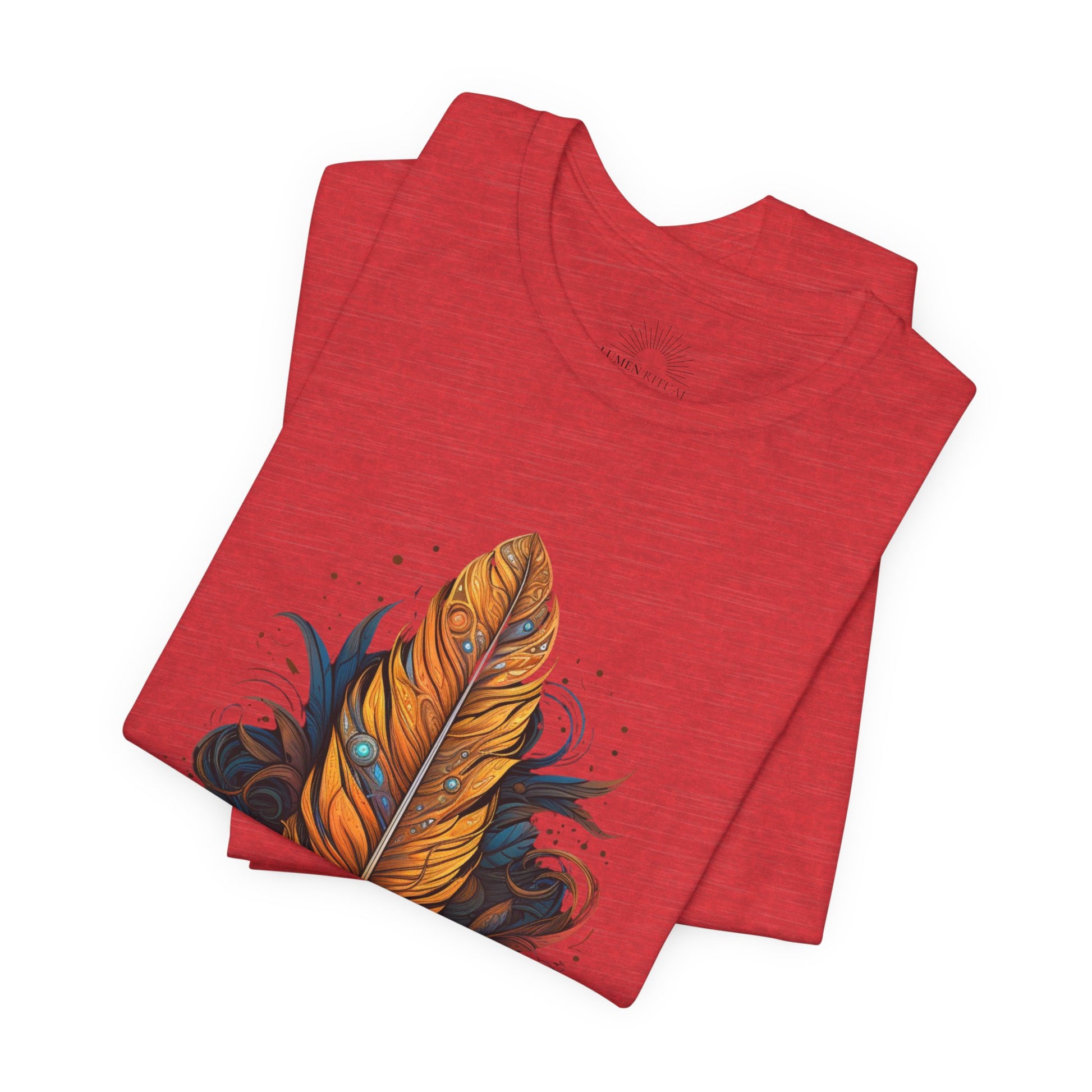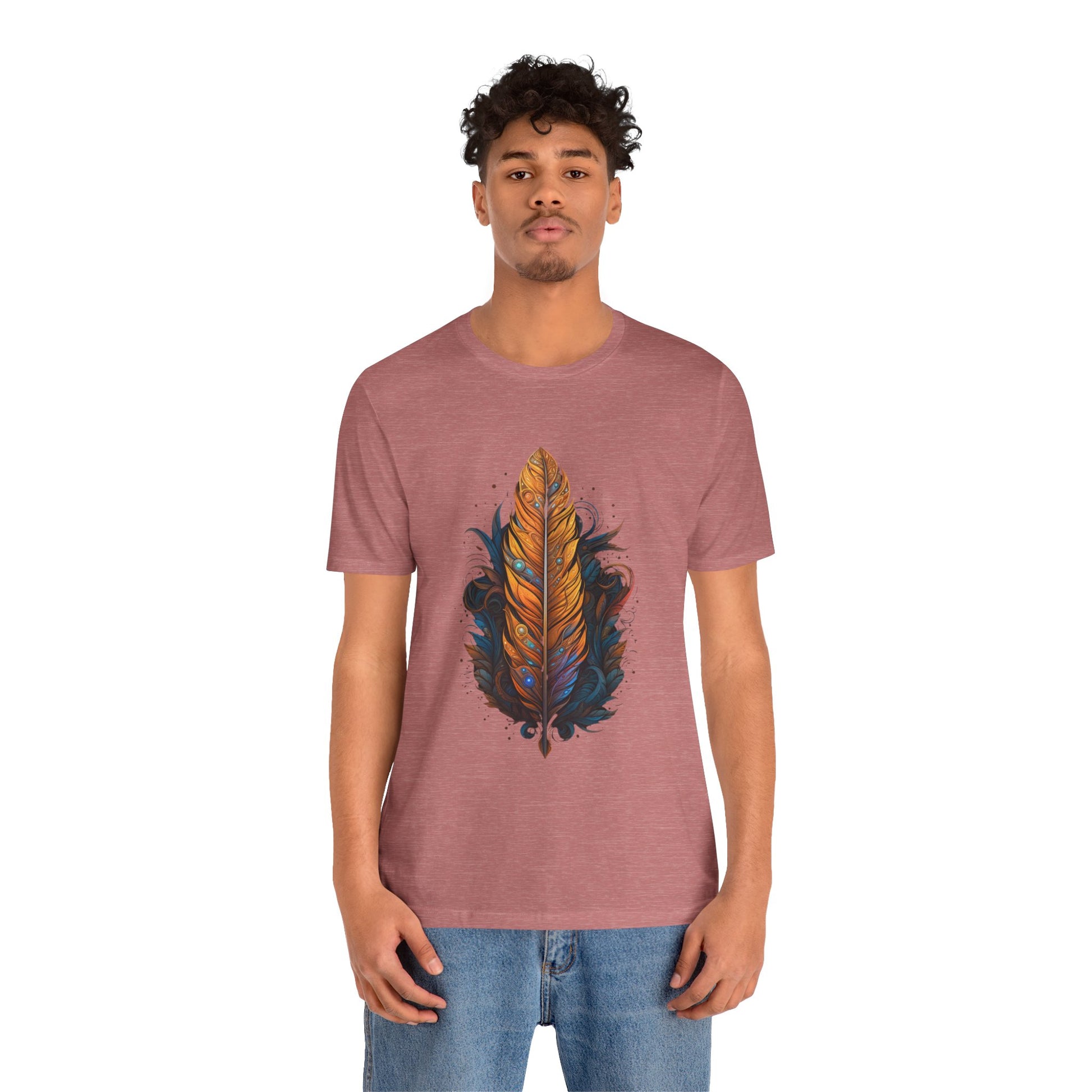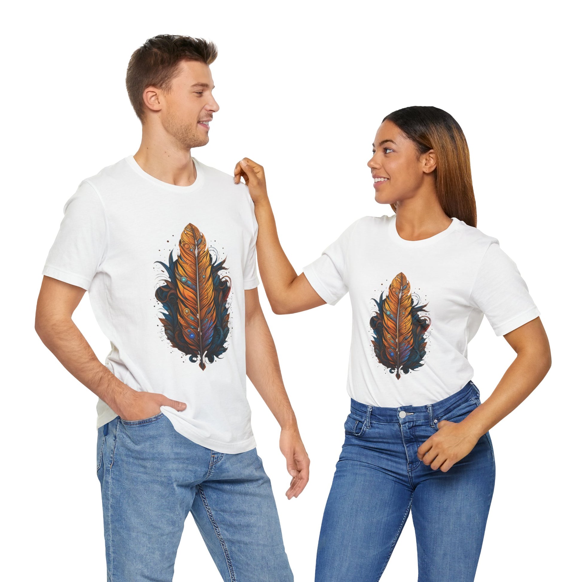 Artistic Feather T-Shirt | Unisex Short Sleeve Tee for Nature Lovers | Casual Wear, Gift for Men/Women, Boho Style, Outdoor Activities