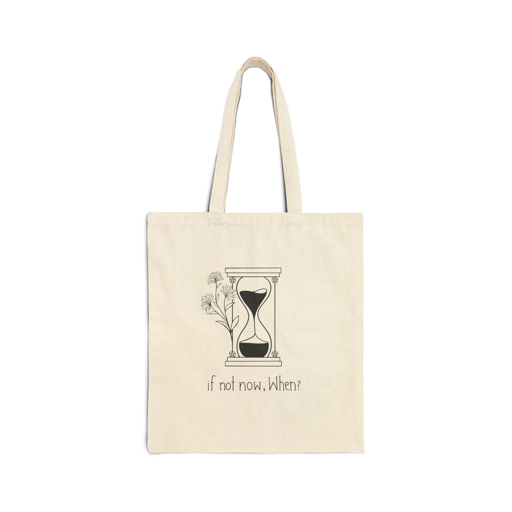 Elevate your everyday outings with this stylish Cotton Canvas Tote Bag. Crafted from 100% durable cotton canvas, it exudes a classic charm while standing the test of time. The minimalist design showcases an inspiring quote alongside a timeless hourglass graphic, making it perfect for those who value both aesthetics and motivation in their daily lives. Whether you're heading to the farmers' market, the beach, or a study group, this tote is an ideal companion. Designed for adults, it adds a touch of sophistication to any attire, making it suitable for various occasions, including birthdays, anniversaries, and holidays such as Earth Day. Its versatile natural and black color options allow it to fit seamlessly into any personal style.
