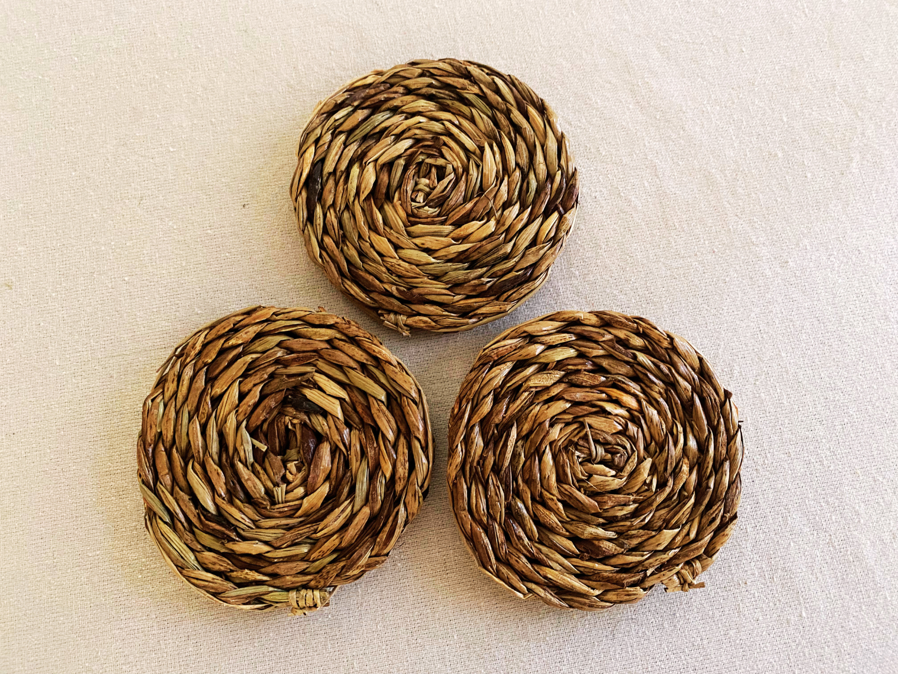 The 'Stillness' Hand-Coiled Reed Coasters (Set of 3)