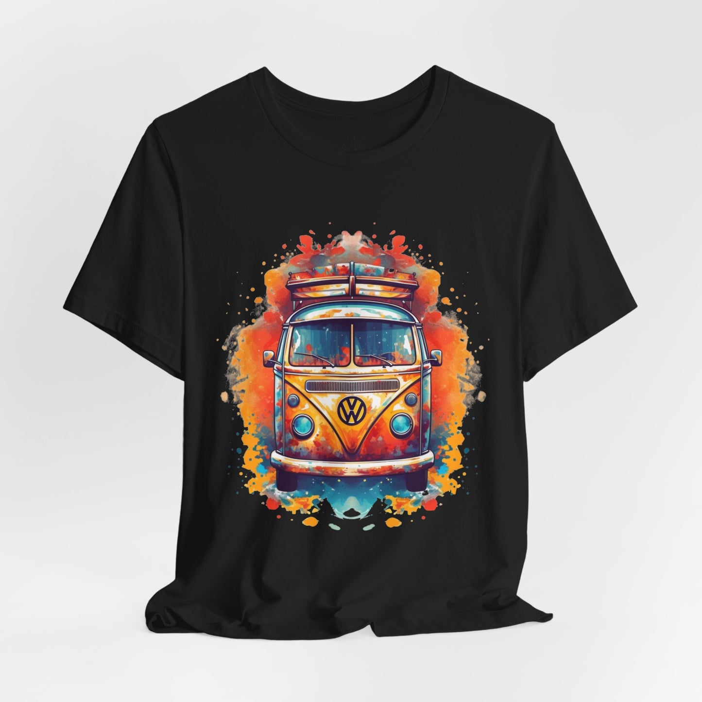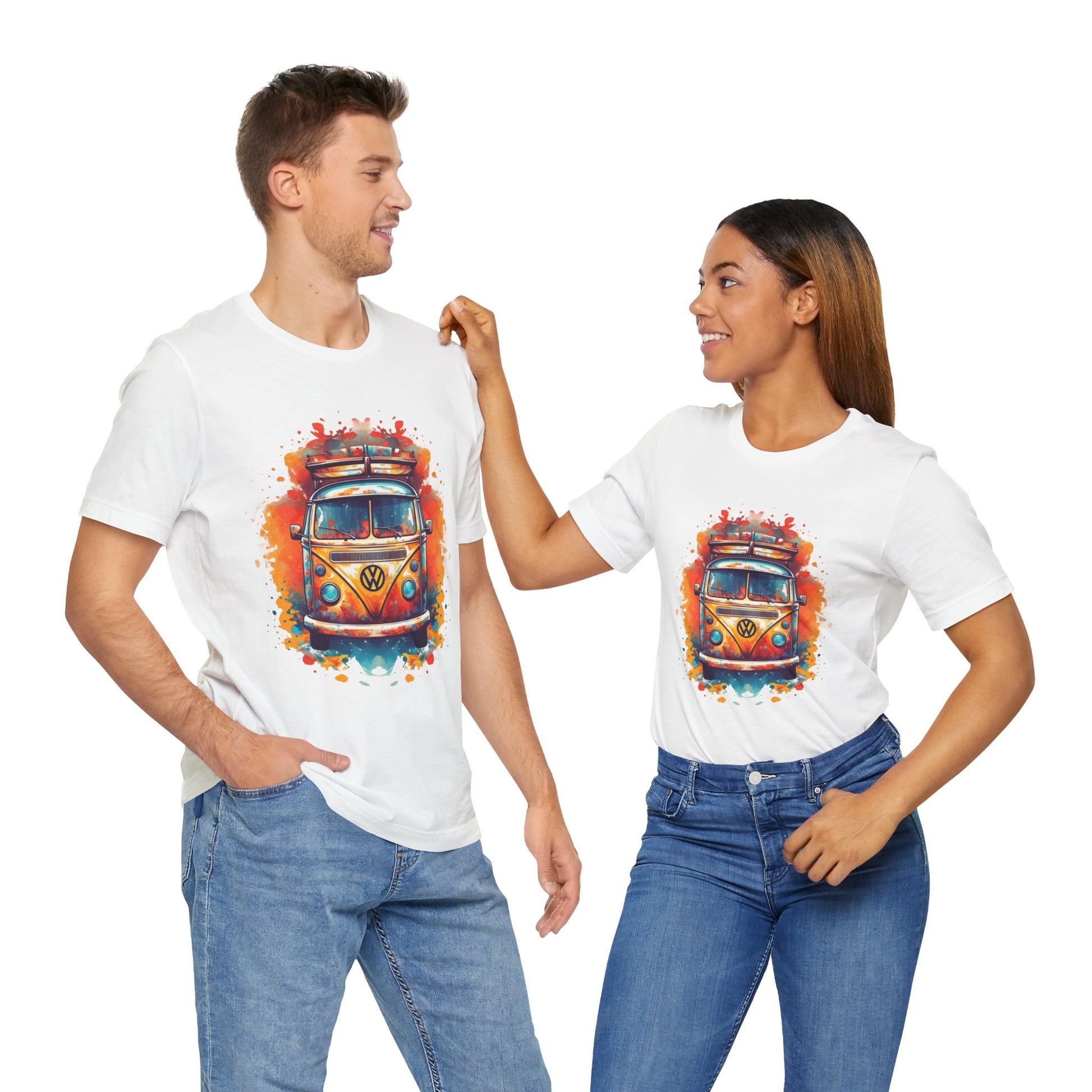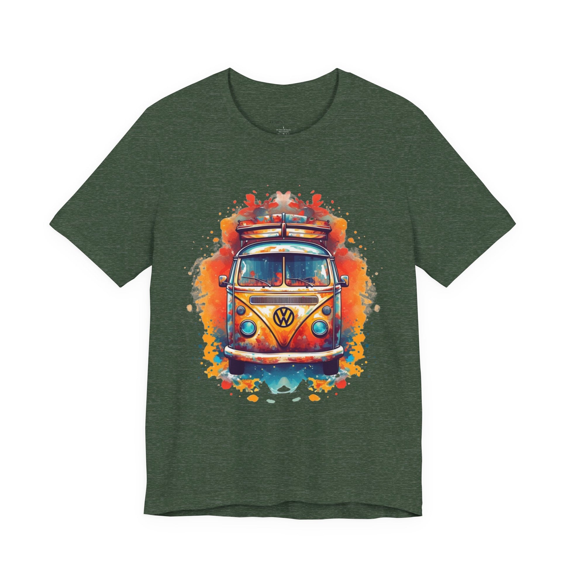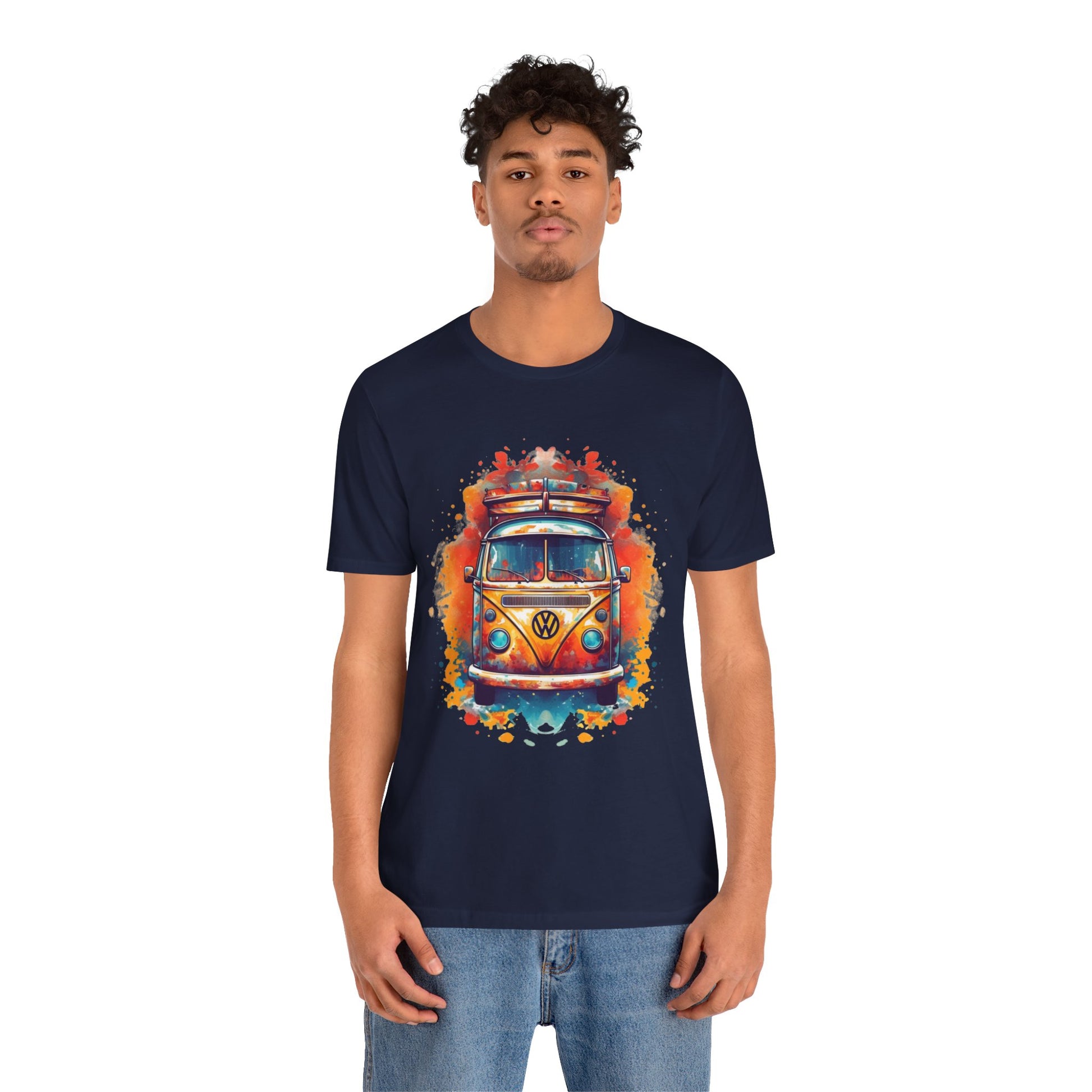 Vintage VW Bus Art Tee - Retro Van Shirt, Gift for Road Trip Lovers, Adventure Wear, Casual Summer Outing, Festival Outfit