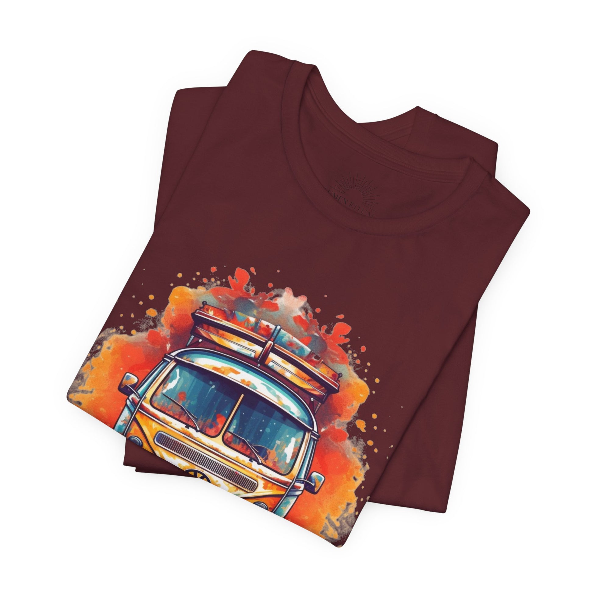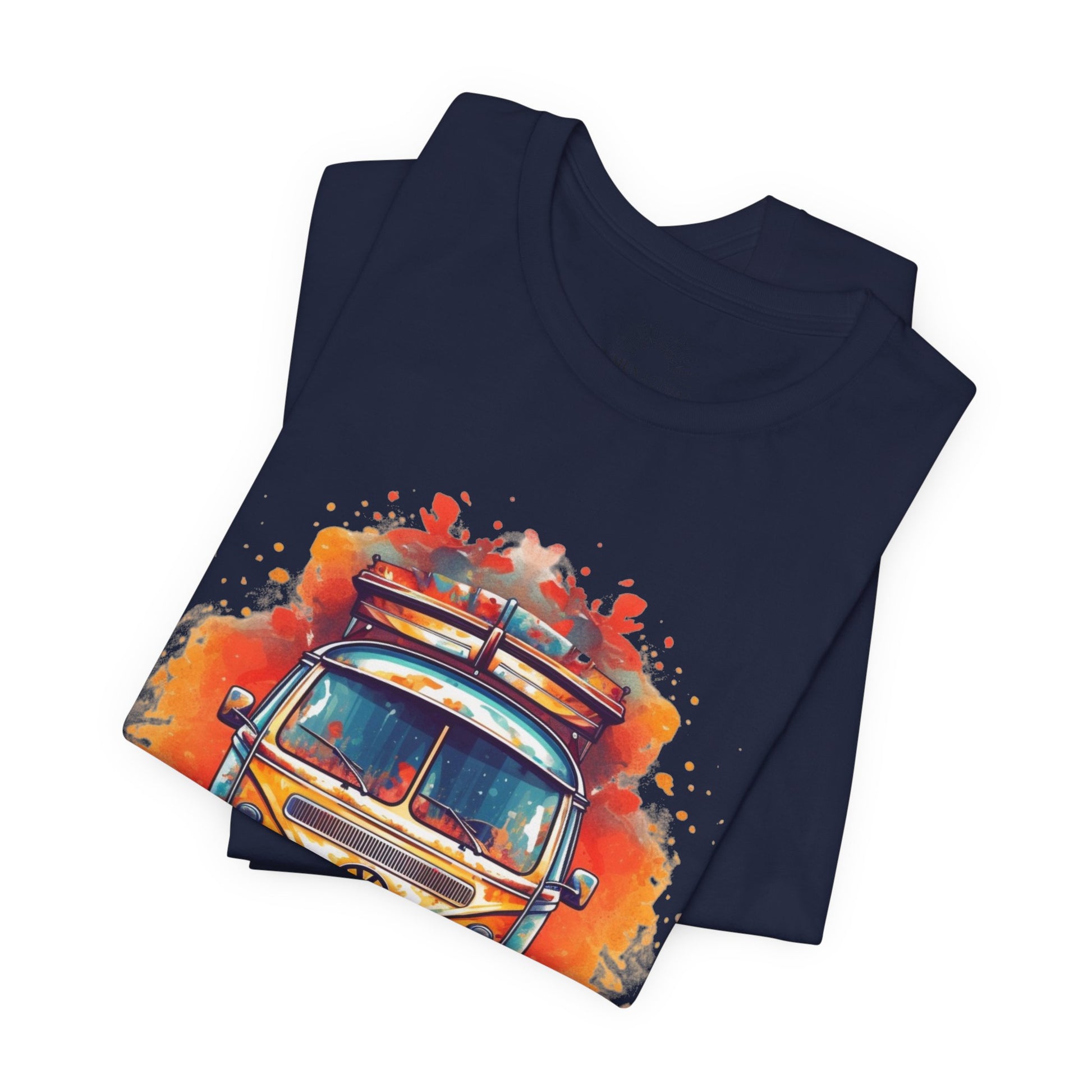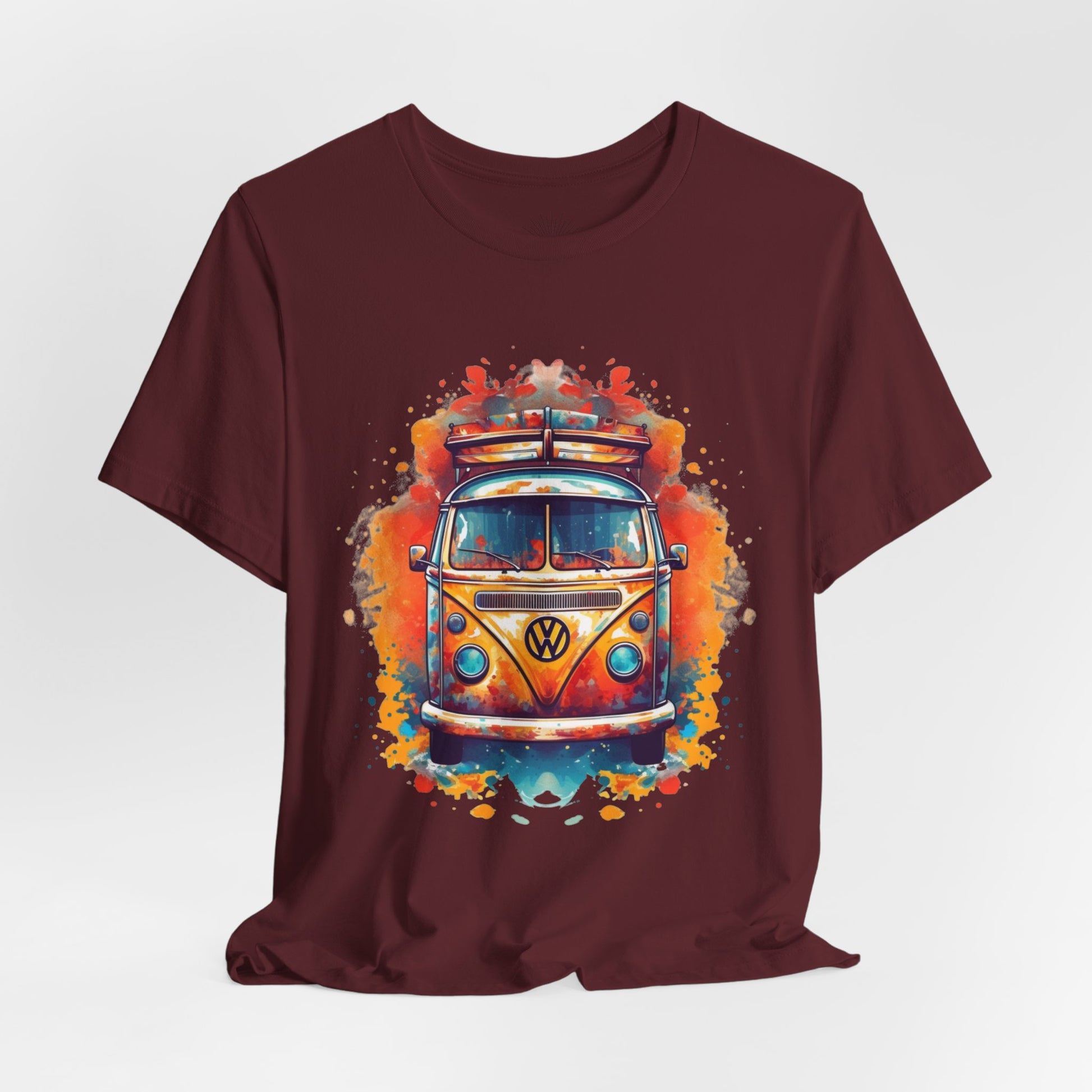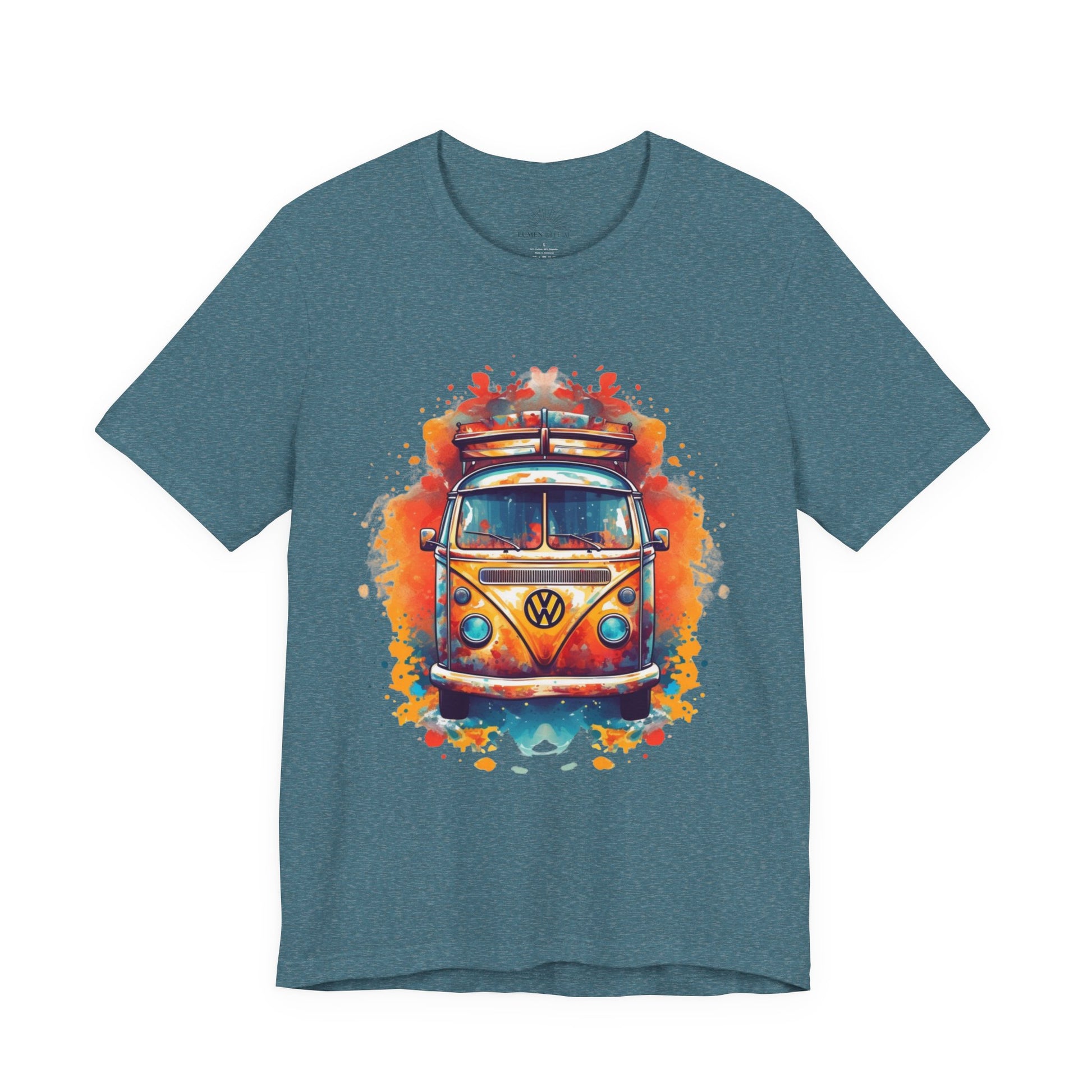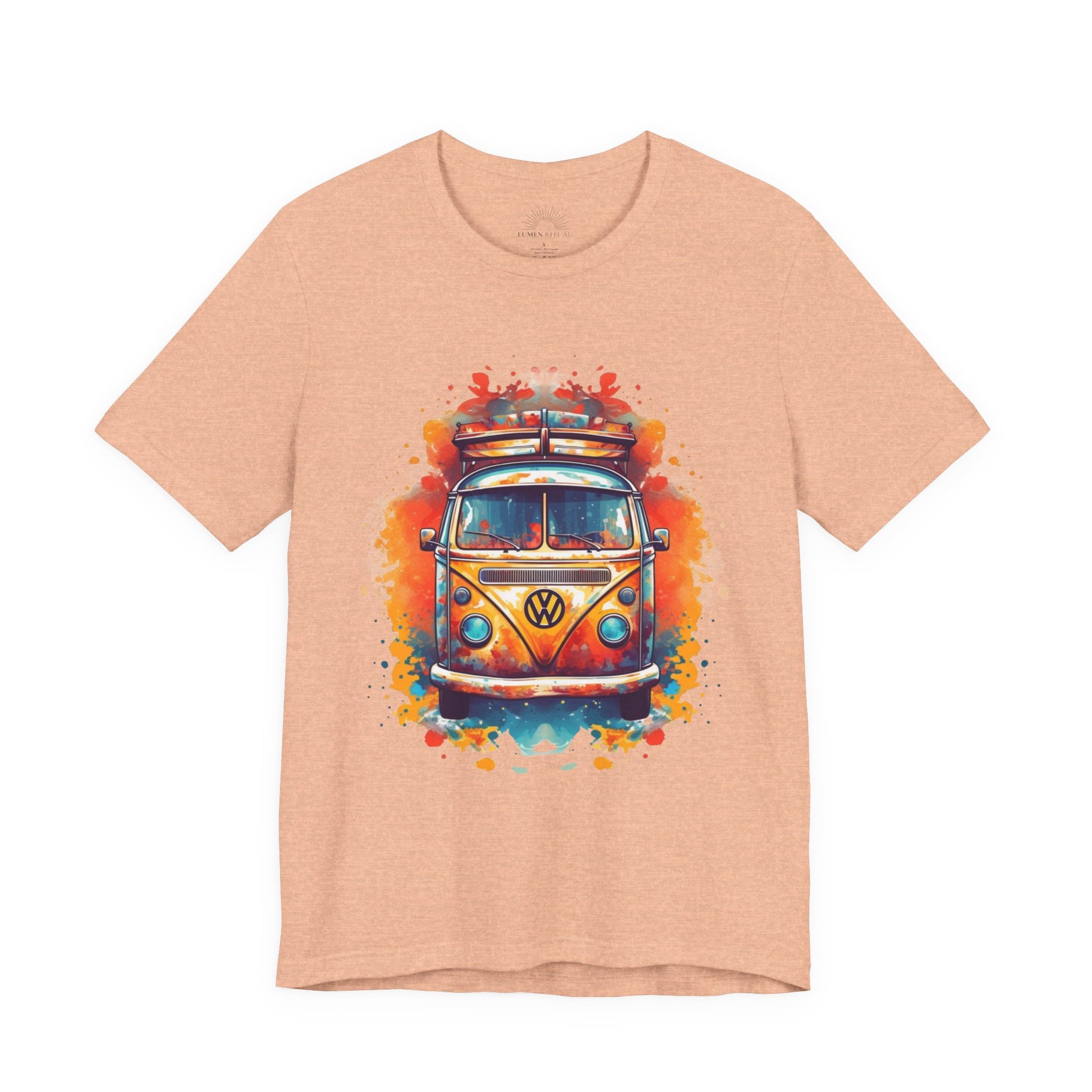Vintage VW Bus Art Tee - Retro Van Shirt, Gift for Road Trip Lovers, Adventure Wear, Casual Summer Outing, Festival Outfit